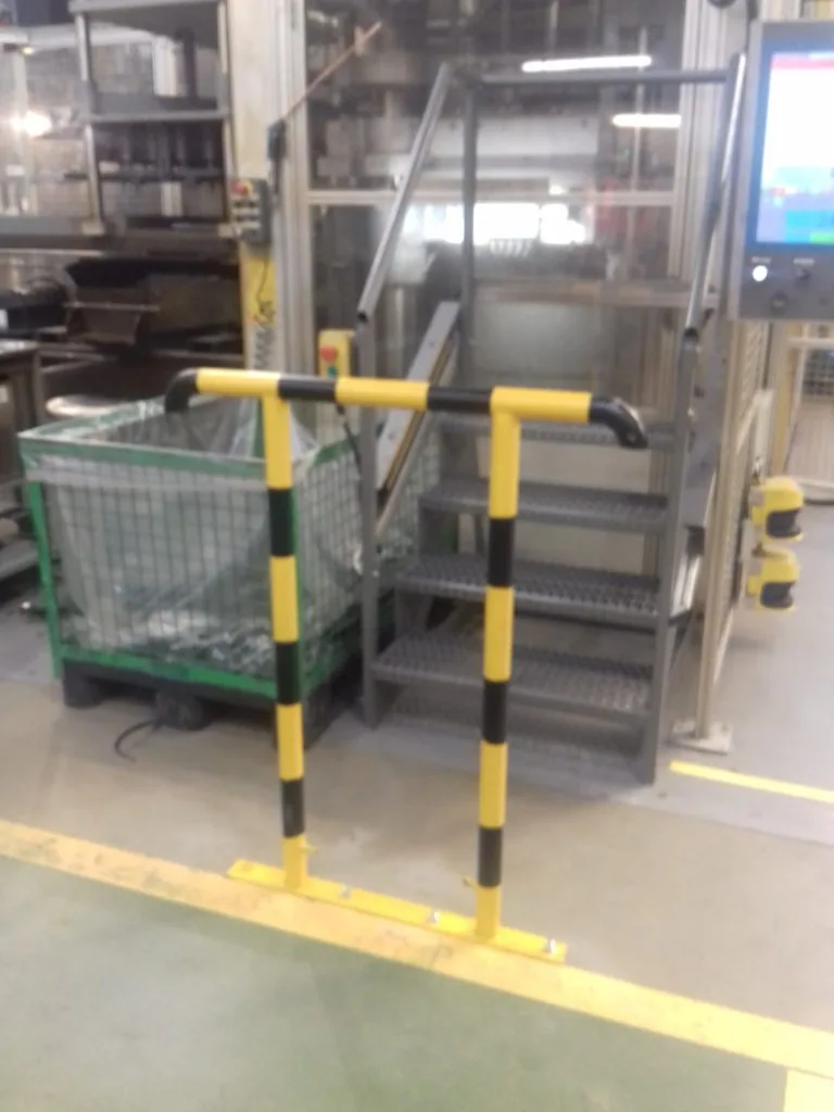 Wózki i schody przemysłowe do intensywnej eksploatacji oraz bariery BHP chroniące ludzi i urządzenia.